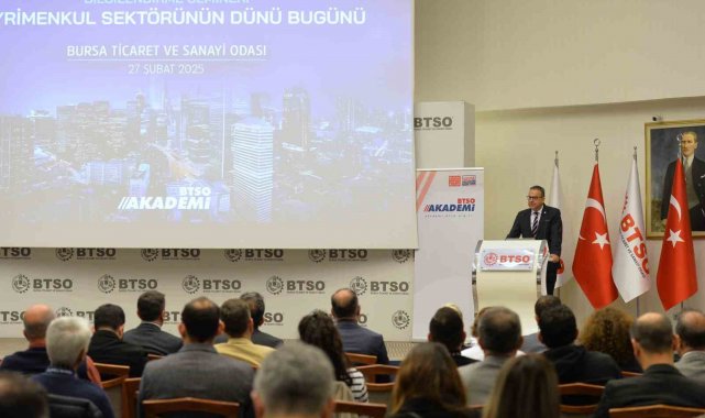 Bursa Ticaret ve Sanayi Odası (BTSO) Akademi projesi kapsamında "Gayrimenkul Sektörünün Dünü, Bugünü" semineri gerçekleştirildi. Toplantının açılışında konuşan BTSO Yönetim Kurulu Üyesi Hakan Batmaz, gayrimenkul sektörünün ekonomik kalkınmanın temel taşlarından biri olduğunu söyledi. Sektörde geçmişte geleneksel yöntemlerle ilerleyen, yerel pazarlara odaklanan ve genellikle bireysel yatırımcıların yönlendirdiği bir gayrimenkul piyasası gördüklerini ancak bugün dijitalleşme, sürdürülebilirlik ve değişen tüketici beklentileri ile sektörün bambaşka bir noktaya evrildiğini ifade eden Batmaz, "Artık yapay zeka destekli analizler, büyük veri kullanımı, akıllı bina projeleri ve yenilikçi teknolojiler, sektörün geleceğini belirleyen unsurlar haline geldi." dedi.