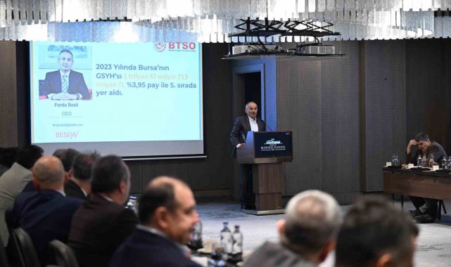 Bursa'nın 2023 yılında GSYH'sinin 1,4 trilyon TL olarak kayıtlara geçtiğini ifade eden Besli, kentin Türkiye'nin toplam GSYH'si içinden aldığı payın ise son 5 yılda 30 baz puan gerilediğini belirtti. Bursa'nın 2023'te yüzde 3,95'lik payla İstanbul, Ankara, İzmir ve Kocaeli'nin ardından 5'inci sırada yer aldığını söyleyen Besli, "Bursa'nın Türkiye'nin toplam GSYH içindeki payı son 5 yılda yüzde 4,25'ten 3,95'e geriledi. Bunu yeniden yüzde 5'ler düzeyine taşımak için yapılması gerekenler neler münazara edilmesi gerekiyor. Bu dönemde özellikle sektör bazında baktığımızda imalat sanayiindeki düşüş dikkat çekiyor. 2018-2023 döneminde imalat sanayi payı 8,33'den 7,32'ye düşmüş. Sanayinin gelişmemiş olması kenti geriye çekiyor. Diğer taraftan Bursa'da son 5 yılda ihracat yüzde 11 artarken, ithalat yüzde 33 artış göstermiş. Bursa ekonomisinin sürdürülebilirliği açısından bu önemli bir uyarı niteliği taşıyor. İthalatın yüksek artış hızının uzun vadede yerel ekonomiyi kırılgan hale getirebileceği ve dışa bağımlılığı artırabileceği göz önünde bulundurulmalı. Bu noktada, yerel yönetimlerin ve iş dünyasının, ihracatın artırılmasına yönelik stratejik adımlar atması kritik önem taşıyor. Daha yüksek katma değerli üretim, yerli teknolojinin desteklenmesi ve sanayi yapısının dönüşümü gibi politikalar, bu dengenin sağlanmasında kilit rol oynuyor." dedi.