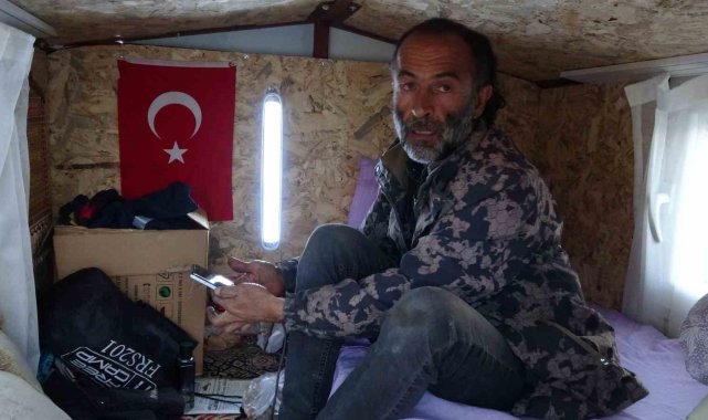 Kendi imkanlarıyla hazırladığı karavanı barınma amacıyla kullanıldığını belirten Yıldız, "Bu aracı kendim yaptım. İçinde sadece yatıp kalkıyorum. Başka bir imkanı yok ama dışarıda kalmaktansa burada kalıyorum" diye konuştu.