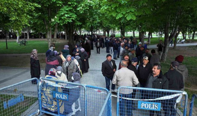 Kayseri'de, belediye tarafından dağıtılan organik fideleri almak isteyen vatandaşlar sabahın erken saatlerinden itibaren uzun kuyruklar oluşturdu.