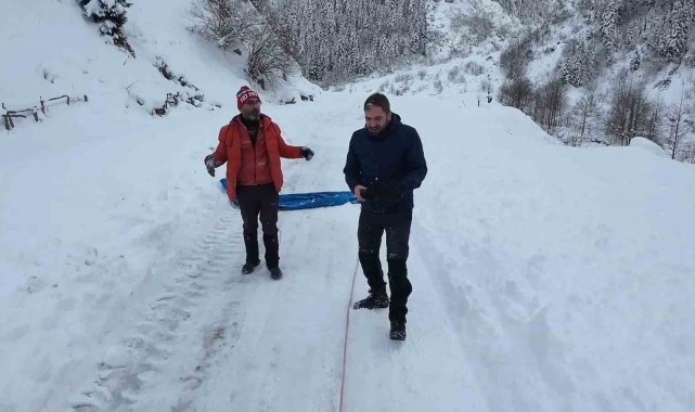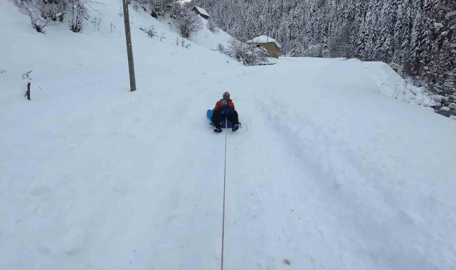 Rize'de yağan karı fırsat bilen 2 kafadarın cipin arkasına bağladıkları branda ile yol boyunca kaydıkları anlar, renkli görüntülere sahne oldu.