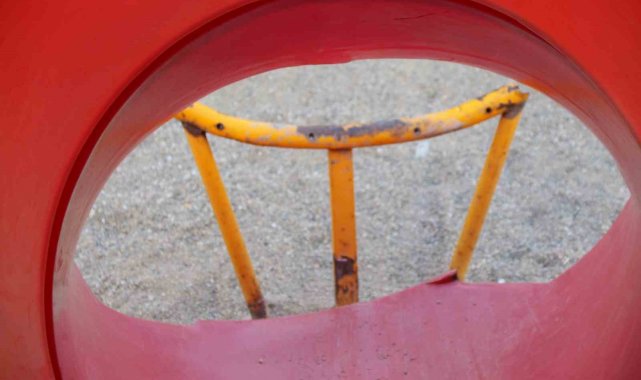 Eskişehir'in Odunpazarı ilçesindeki bir çocuk parkındaki kaydırağın bitimine dikilen korkuluğun kazaya davetiye çıkaran hali düşündürdü.