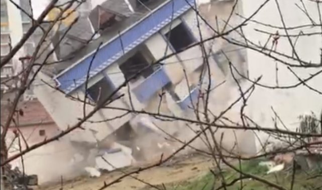 Güvenlik ve tedbir önlemleri alınmadan yapılan yıkım esnasında 5 katlı binanın girişinde bulunan kolonlar zarar görürken, yıkım esnasında binanın yan yattığı ve bitişiğinde bulunan binanın kolonlarının zarar gördüğü anlar kameraya yansıdı. Yıkım sonrası son durum ise havadan dron kamerası ile görüntülendi. Öte yandan kolonu zarar gören binanın boşaltılarak mühürlendiği öğrenildi.