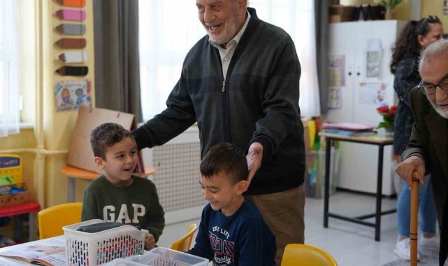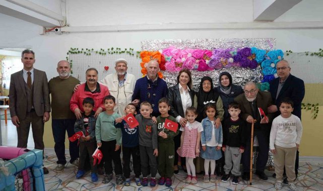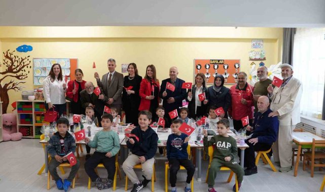 Sosyal Hizmetler Müdürlüğü tarafından organize edilen programda yaşlılar, ana sınıfı öğrencileriyle buluştu. Çocuklara, özenle hazırladıkları hediyeler ile birlikte çiçek ve Türk bayrağı veren yaşlılar, 23 Nisan Bayramı'nı kutladılar.