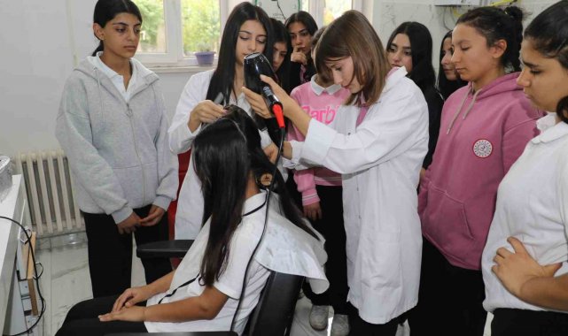 Kuaförlük öğretmeni Birgül Seldüz ise okullarında 2 derslik ve 2 döner sermaye atölyelerinin bulunduğunu söyledi. Seldüz, ''Öğrencilerimiz 9, 10, 11 ve 12. sınıflarda eğitim görmektedir. Eğitim süreci, kültür dersleriyle başlayıp sonrasında mesleki derslerle devam ediyor. 12'nci sınıfa gelen öğrencilerimiz staj yapmaktadırlar. Ancak öncesinde, bulunduğumuz bu atölyede kuaförlük işlemlerine dair tüm uygulamaları, kuaförlük konseptinde ne varsa birebir bizim öncülüğümüzde öğreniyorlar. Öğrencilerimiz burada belirli bir oranda ücret kazanmaktadır ve sigorta primleri de yatırılmaktadır. Bu süreçte öğrencilerimiz yalnızca mesleki becerilerini değil, aynı zamanda sosyalleşme ve insan ilişkileri konularında da önemli deneyimler kazanmaktadır. Atölyemiz dışarıdan gelen misafirlere de açıktır. Hafta içi, eğitim takvimine göre 09.00-17.00 saatleri arasında dışarıdan gelen danışanlarımızı ağırlıyoruz. Verilen hizmetler, dışarıdaki fiyatlara göre yüzde 50 indirimli olarak sunulmaktadır'' diye konuştu.