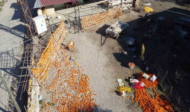 Narenciyenin başkenti Adana'da meyvenin yanı sıra çiftçi, portakal, mandalina ve turunçun kabuğunu çamaşır iplerine asıp kilosunu 20-25 liradan satıyor