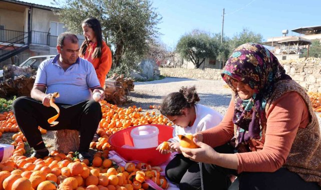 Turunçlu köyünden Ahmet Yiğenoğlu, "10 kilodan 1 kilo kabuk çıkıyor. Ağaçlarda kalınca ağaçlara zarar veriyor biz de topluyoruz. Turunçların kabuğu ayrı içi ayrı değerlendiriliyor. Turunç ekşisi yapıyoruz. Bir yanda kazan kaynıyor bir yanda turunç, portakal narenciye kabukları soyuluyor. Kilosu 20-25 TL arasında satılıyor. Köye gelen toptancılara satılıyor, Ege bölgesine gidiyor. Kozmetik, ilaç sanayisinde kullanıyor. Ailecek oturup bu işi yapıyoruz" dedi.