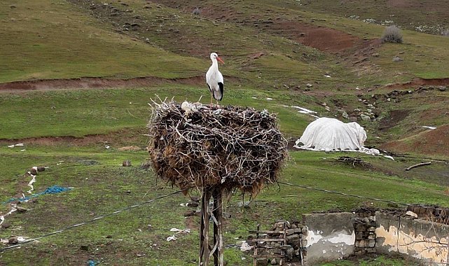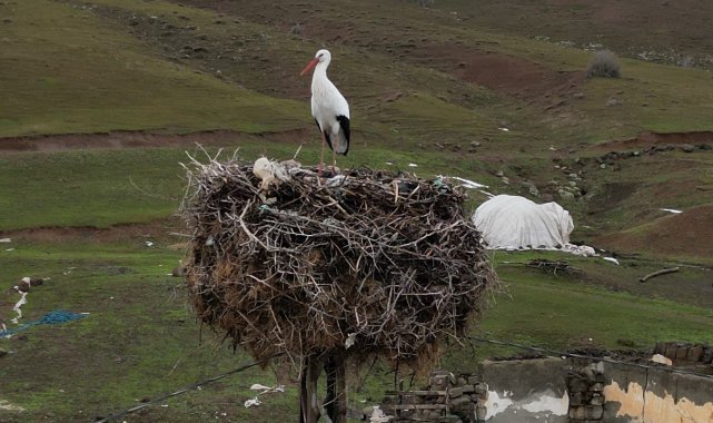 Bitlis'in Güroymak ilçesine bağlı Budaklı köyünde bulunan bir leylek, yıllardır göç etmeyerek aynı yuvada kalmaya devam ediyor.