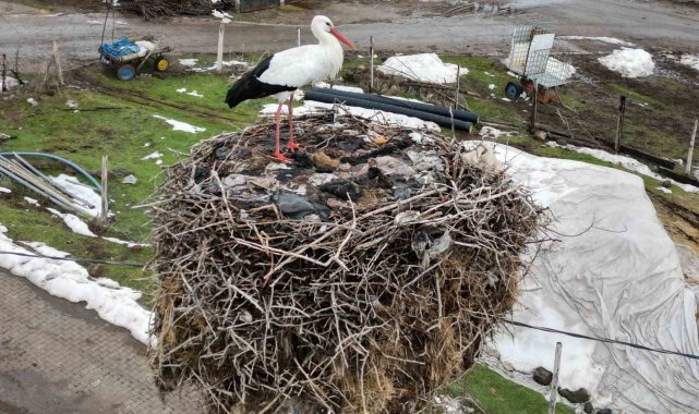 Budaklı köyünde göç etmeyen leylek yıllardır aynı yuvada