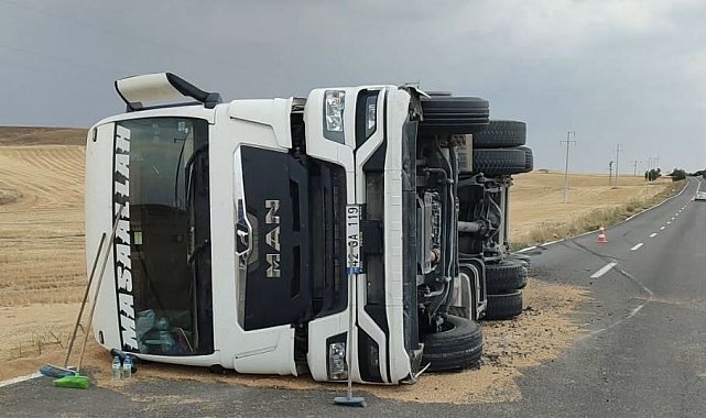 Buğday yüklü kamyon devrildi: 1 yaralı