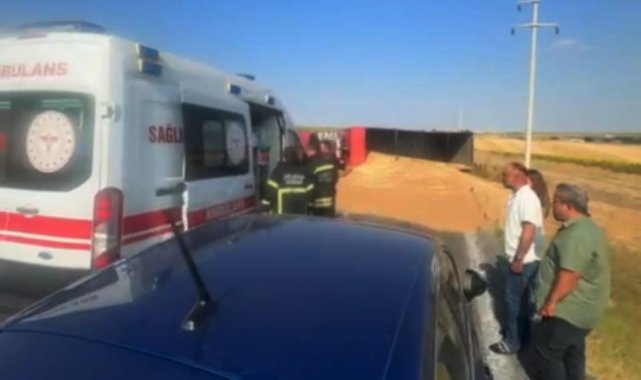 Buğday yüklü kamyon devrildi, sürücü yaralandı