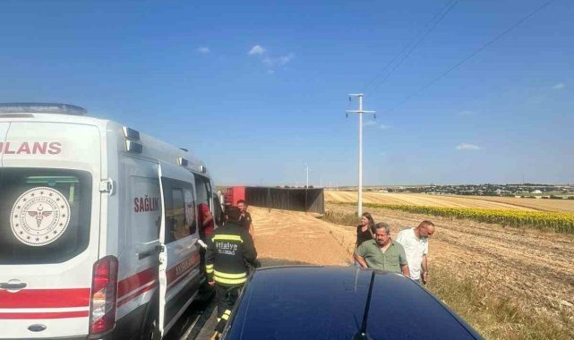 Tekirdağ'ın Muratlı ilçesinde buğday yüklü kamyonun devrildiği kazada sürücü yaralandı.