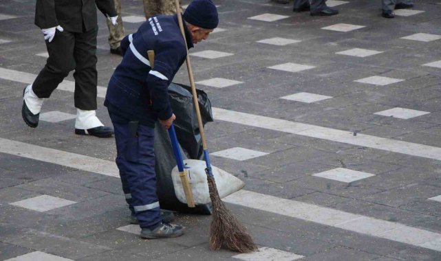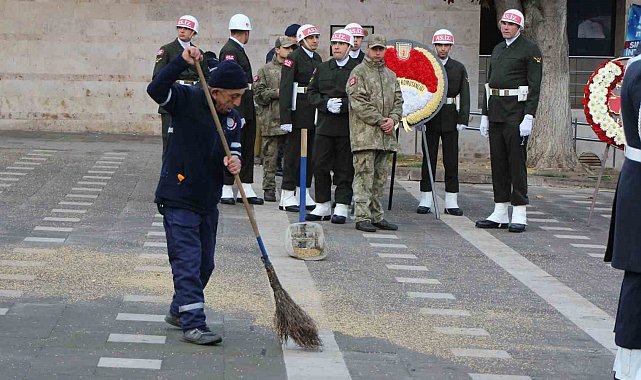Amasya'da bir temizlik işçisi, 10 Kasım töreninin düzenlendiği meydana serpilen buğday tanelerinin ayak altında kalmaması için yerden süpürüp temizledi. Tören başlamadan buğdayları temizlemek için zamanla yarışan temizlik işçisi Kemal Yıldırım, "Buğday nimettir, ekmektir. Ezilmesine gönlüm razı olmadı" dedi.