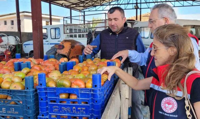 Türkiye'nin domates üretim merkezleri arasında yer alan Aydın'da, domates üreticilerinin hasat hareketliliği sürerken, İlçe Tarım ve Orman Müdürlüğü ekipleri de tarlalardaki kontrollerine devam ediyor. Bu çerçevede sahaya inen ilçe tarım ekipleri, hasat öncesi pestisit kalıntı kontrolü için numune alımı gerçekleştirdi. Yapılan kontrollerle hem insan sağlığını korumak hem de ihracat kalitesini artırmak hedeflenirken, numune alımlarının yanı sıra ürün kalitesini de inceleyen ekipler, üreticilere de bilgilendirmelerde bulundu. Çalışmaların aralıksız süreceği öğrenilirken teknik personeller tarafından gerçekleştirilen numune alımları, ruhsatlı tarım ilaçlarının doğru dozlarda kullanılıp kullanılmadığının belirlenmesi amacıyla Muğla Gıda Kontrol Laboratuvar Müdürlüğü'ne gönderilecek. Analiz sonuçlarında ruhsatsız aktif madde tespit edilmesi durumunda idari para cezası uygulanırken, yasaklı aktif maddelere rastlanması halinde ürünler imha ediliyor.