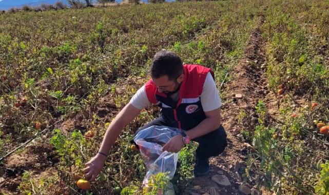 Aydın'ın Buharkent ilçesinde sahaya inen ilçe tarım ekipleri pestisit kontrolü için hasat öncesinde domateslerden numune aldı.