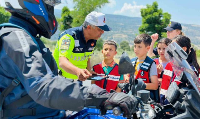 Aydın İl Jandarma Komutanlığı Aile içi Şiddetle Mücadele ve Çocuk Kısım Amirliği Jandarma'nın 186. Kuruluş Yıldönümü kutlama etkinliklerine devam ediyor. Jandarma ekipleri Buharkent Kamil Paşa, Kızıldere, Savcıllı, Ortakçı, Gelenbe ve İstiklal İlkokulları'nda eğitim gören 4. sınıf öğrencileri, Buharkent İlçe Jandarma Komutanlığı'nca misafir edildi. Aydın İl Jandarma Komutanlığı Aile İçi Şiddetle Mücadele ve Çocuk Kısım Amirliği, Buharkent İlçe Jandarma Komutanlığı ve Kuyucak Trafik Timi personellerince Jandarma Mesleği'nin tanıtımı yapıldı. Öğrenciler ile birlikte yol kontrol faaliyeti icra edilerek faaliyet sonunda Türk Bayrağı ve balon hediye edildi.