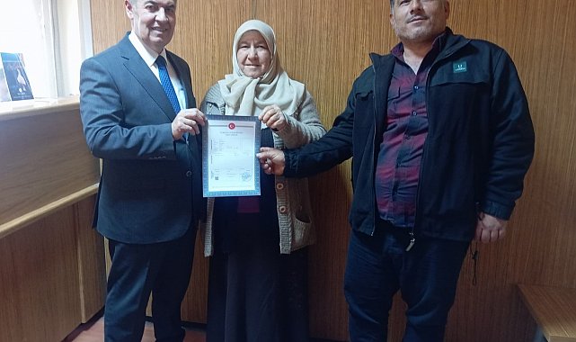 Vatandaşların tapularını teslim eden Başkan Erol, "Kızıldere Mahallemizde yapılan parselasyona göre ilgili parselin tapu devir işlemi Ümmü Döken'e yapılmıştır. Hayırlı olsun" dedi.