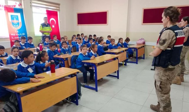 MUŞ (İHA) – Muş'un Bulanık İlçe Jandarma Komutanlığı trafik ekipleri tarafından eğitim öğretim yılının başlaması ile birlikte öğrencilere trafik konusunda bilgilendirme yapıldı.