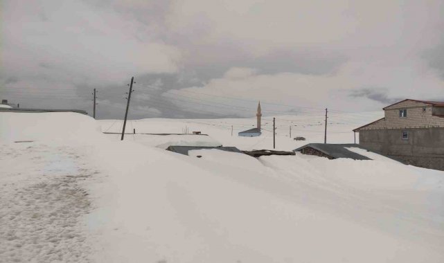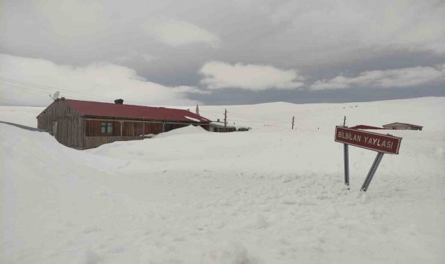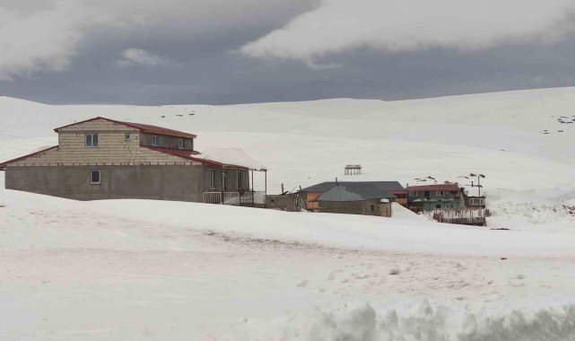 Kışın yoğun kar ve fırtınanın etkisiyle tamamı karla kaplanan Ardahan'ın 2 bin 581 rakımlı Bülbülan Yaylası'ndaki ev ve iş yerleri nisan ayında hala kara gömülü.