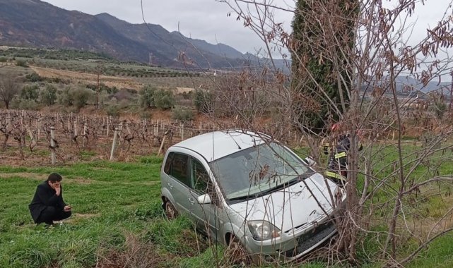 Denizli'nin Buldan ilçesinde yağmur nedeniyle kayganlaşan yolda kontrolden çıkan otomobil üzüm bağına savruldu. Aynı güzergahta aynı gün içerisinde yaşanan ikinci kaza dikkat çekti.