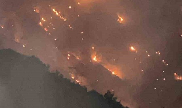 Yangına havadan ve karadan müdahalelerin aralıksız devam ettiği öğrenildi.