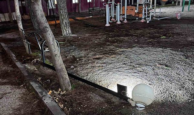 Buldan'da çocuk parkındaki aydınlatma direği tehlike saçıyor