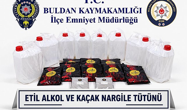 Denizli'nin Buldan ilçesinde İlçe Emniyet Müdürlüğü ekipleri, ilçeye farklı illerden kaçak alkol yapımında kullanılan etil alkol ve kaçak nargile tütünü getirildiği bilgisi üzerine harekete geçti. Yapılan çalışma kapsamında şüpheli şahsa yönelik operasyon düzenlendi. Operasyonda şüphelinin yanında bulunan paketlerde yapılan aramalarda 40 litre etil alkol ile 9 kilo kaçak nargile tütünü ele geçirildi. Ele geçirilen kaçak ürünlere el konulurken, şüpheli şahıs hakkında yasal işlem başlatıldığı öğrenildi.