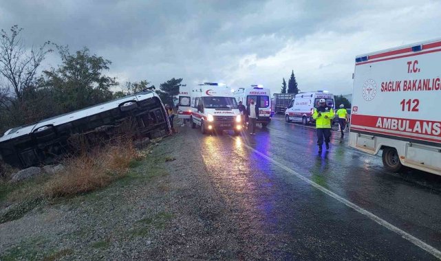 Buldan'dan İzmir'e dönen tur midibüsü şarampole yuvarlandı; 2 ölü 31 yaralı