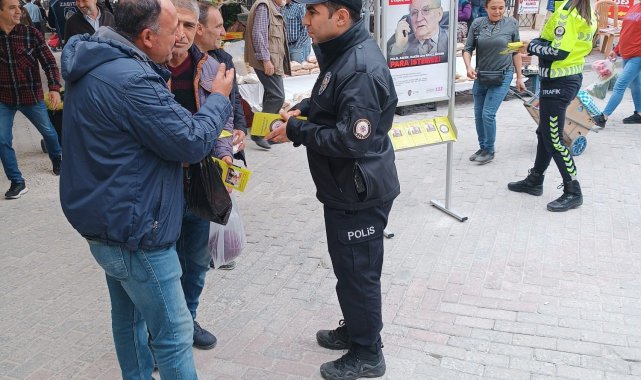 Buldan Pazaryerinde vatandaşları dolandırıcılara karşı uyaran Buldan İlçe Emniyet Müdürülüğü ekipleri, broşürde dağıtarak dolandırıcılara karşı yapılması gerekenler hakkında bilgiler verdi.