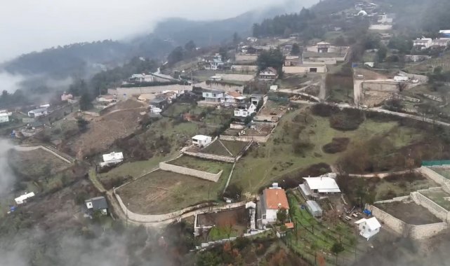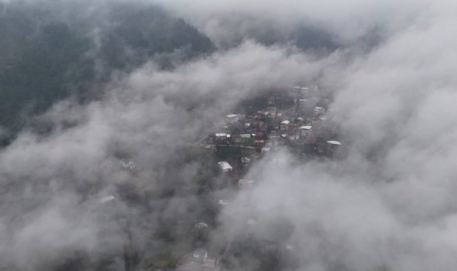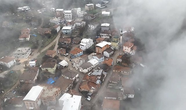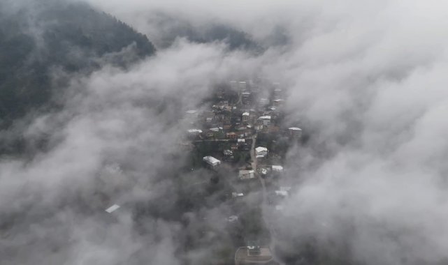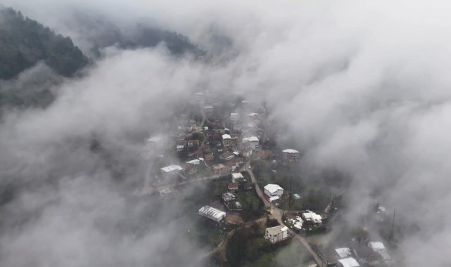 Bursa'nın Osmangazi ilçesindeki yüksek rakımlı Gökçeören Mahallesi bulutların arasında eşsiz bir manzara oluşturdu. Adeta Trabzon yaylalarını andıran görsel şölen dronla havadan görüntülendi.