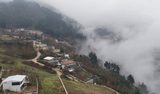 Bursa'da yüksek rakımdan dolayı bulutların içerisinde kalan Gökçeören Mahallesi adeta Trabzon yaylalarını andırdı.