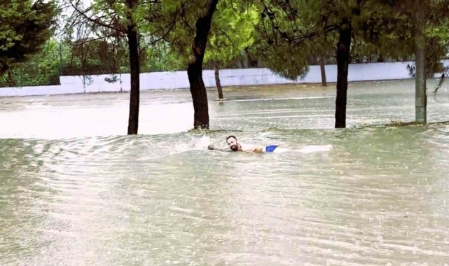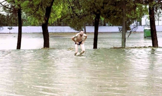 Denizli'de 10 dakika devam eden sağanak yağış, cadde ve sokaklarda su baskınlarına neden oldu. Göle dönen bulvarda yüzerek sıra dışı bir tepkiye imza atan antrenör, "Deli değilim, Denizli'nin çöken alt yapısına dikkat çekmek için yaptım" dedi.