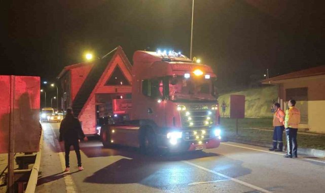 Bungalov ev taşıyan tır, tünel girişine takıldı