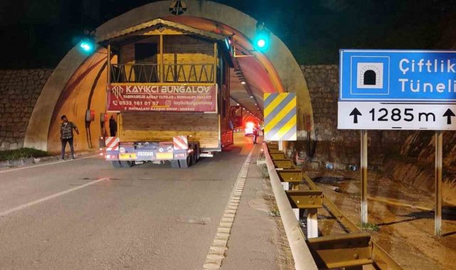 Olay, akşam saatlerinde Sinop-Samsun Yolu Çiftlik tüneli mevkiinde meydana geldi. Üzerinde bungalov ev taşıyan 34 KZ 6191 plakalı tır Çiftlik Tüneli'ne girdiği esnada üzerindeki bungalov ev tünelin girişine takıldı. Yol trafiğe kapandı. Tünel girişine takılan tırın polis ekipleri kontrolünde geri geri gitmesi sağlandı. Daha sonra tırın üstündeki bungalov evin çatı kısmı sökülerek tekrardan tünelden geçmesi denendi. Bungalov evin çatı kısmı söküldüğü halde tünelden geçemeyen tır, servis yolundan yoluna devam etti. Tünelde herhangi bir hasar oluşmazken, yolun kısa süre içinde yeniden trafiğe açıldığı bildirildi.