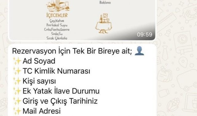 Mesajlaşmalar sırasında kişi başı 6 bin TL olmak üzere toplam 12 bin TL konaklama bedeli talep edildi. Kadın, gönderilen IBAN numarasına açıklama kısmına rezervasyon bilgilerini de ekleyerek ödemeyi gerçekleştirdi.