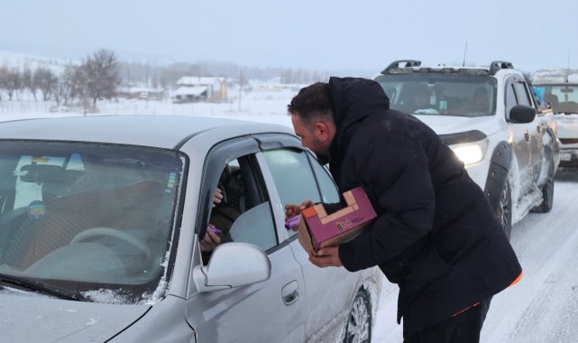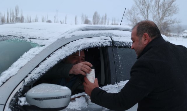 Kayseri'nin Bünyan ilçesinde etkili olan yoğun kar yağışı hayatı olumsuz etkilerken, Bünyan Belediyesi sahada görev yapan ekipleri ve yolda kalan vatandaşları yalnız bırakmayarak, ikramda bulundu.