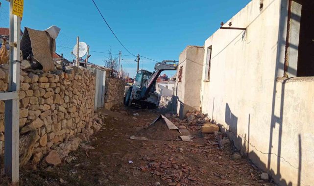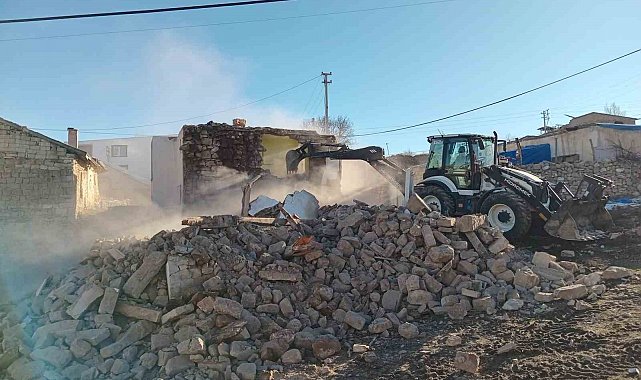 Kayseri'nin Bünyan ilçesinde harabe haldeki yapılar belediye ekiplerince yıkıldı.