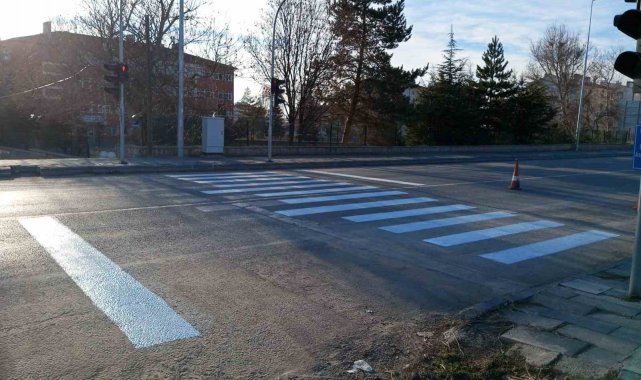 Bünyan Belediyesi ekiplerince eğitim öğretime verilen ara tatilin ardından öğrencilerin ve vatandaşların güvenliğini artırmak amacıyla okul çevresindeki yaya geçitleri yenileniyor.