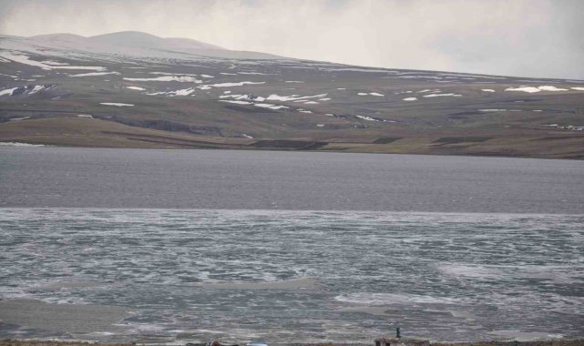 Kars'ın Susuz ilçesinde bin 942 rakımda bulunan ve bir volkanik set gölü olan denizden 2 bin 300 metre yükseklikte bulunan Aygır Gölü görenleri büyülerken, gölün buzlarının erimeye başlamasıyla balıkçılarda hazırlıklarını yapmaya başladı.
