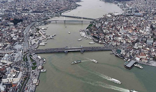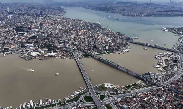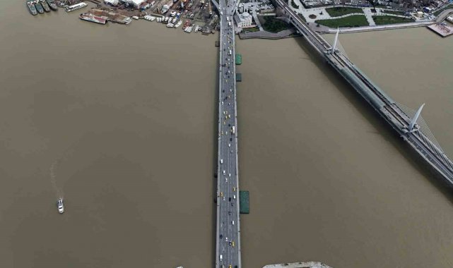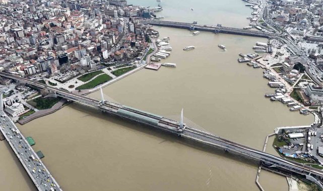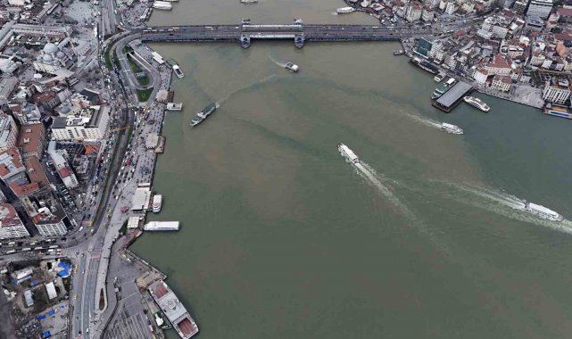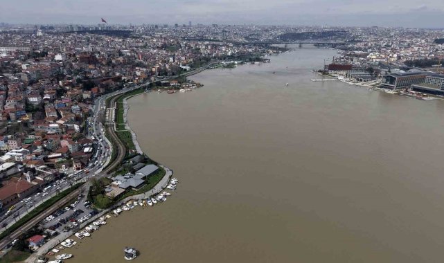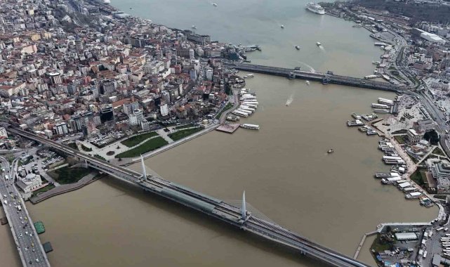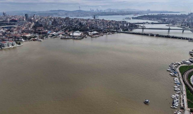 İstanbul`da etkili olan sağanak yağış sonrası dereler ve kanalizasyonlardan gelen çamurlu su, Haliç ile buluşmasıyla suyun rengi kahverengiye dönüştü. Çamura bulanan Haliç havadan görüntülendi.