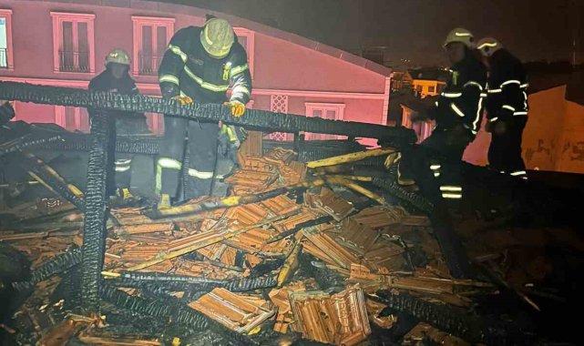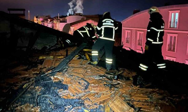 Yangında apartmanın çatısı tamamen yanarak kullanılmaz hale gelirken yangının çıkış nedeni araştırılıyor.