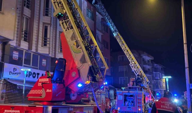 Burdur'da 4 katlı bir apartmanın çatısında çıkan yangın itfaiye ekiplerinin uzun uğraşları sonucu söndürülürken çatı tamamen yandı.