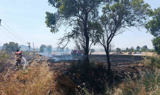 Yangında yaklaşık 10 dönüm anız alan zarar görürken, 3 büyük saman balyası ile 15 adet sulama borusunun da kullanılamaz hale geldiği bildirildi.