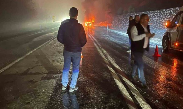 Kaza Antalya - Isparta yolu üzerinde Elsazı Mevkiinde meydana geldi. Plakası ve sürücüsü öğrenilemeyen BMW marka otomobil seyir halindeyken birdenbire alev aldı. Sürücü aracı yol kenarına park ederek araçta bulunanlarla birlikte dışarı çıkmayı başardı. Olay sonrası kendi imkanlarıyla yangına müdahale etmeye çalıştılar. Olay sonrası ihbar üzerine 122 itfaiye, sağlık ve jandarma ekipleri sevk edildi. Kısa sürede alevlere teslim olan ekipler tarafından söndürülürken, araç kullanılamaz hale geldi
