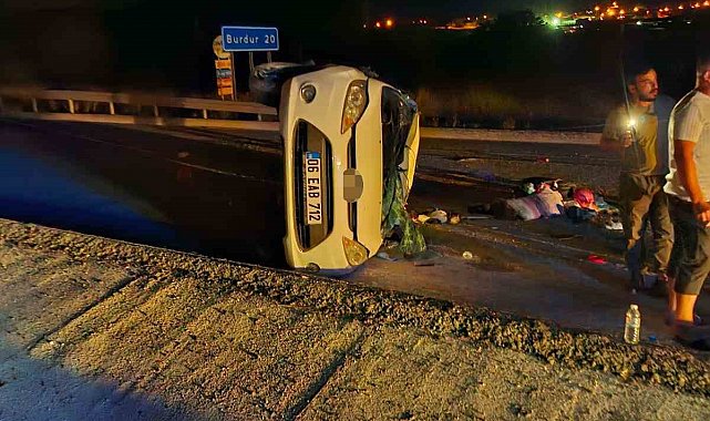 Burdur'da kontrolden çıkan otomobilin refüje düşerek devrilmesi sonucu 3 kişi yaralandı.