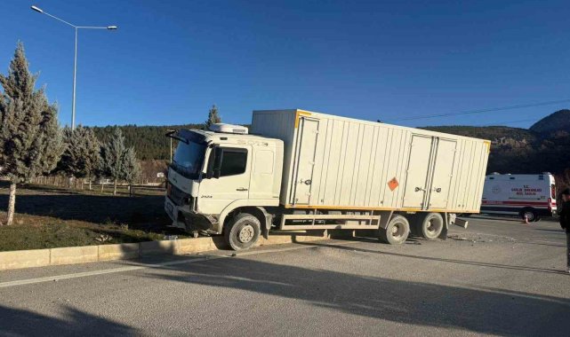 Burdur'un Altınyayla ilçesinde otomobil ile kamyonun kavşakta çarpışması sonucu meydana gelen trafik kazasında 1 kişi yaralandı. Kaza anı araç kamerasına saniye saniye yansıdı.
