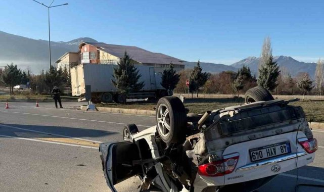 Kaza, Altınyayla ilçesi Dirmil Kavşağı'nda meydana geldi. Edinilen bilgiye göre, sürücüleri öğrenilemeyen 32 ABA 083 plakalı kamyon ile 48 AYH 049 plakalı otomobil kavşakta çarpıştı. Çarpmanın etkisiyle otomobil takla atarken, kamyon refüje çıktı. Kazada otomobil sürücüsü yaralanırken, ihbar üzerine olay yerine sağlık ve polis ekipleri sevk edildi. Yaralı sürücü sağlık ekipleri tarafından yapılan ilk müdahalenin ardından ambulansla hastaneye kaldırıldı.
