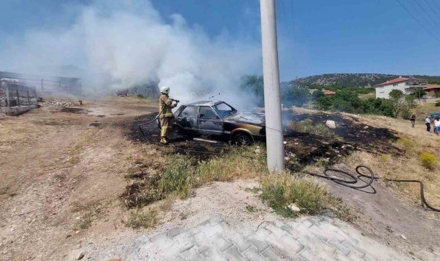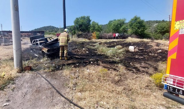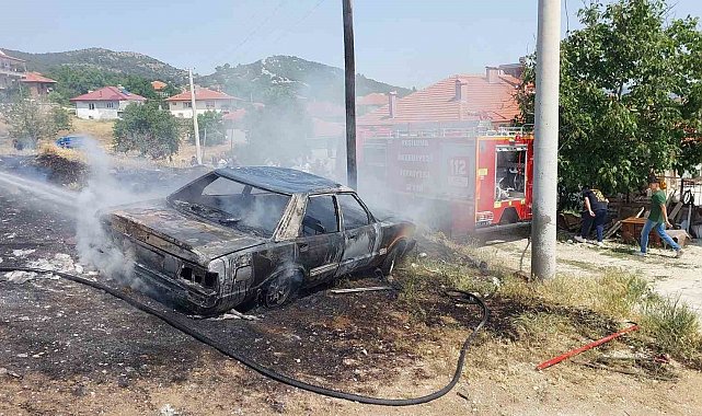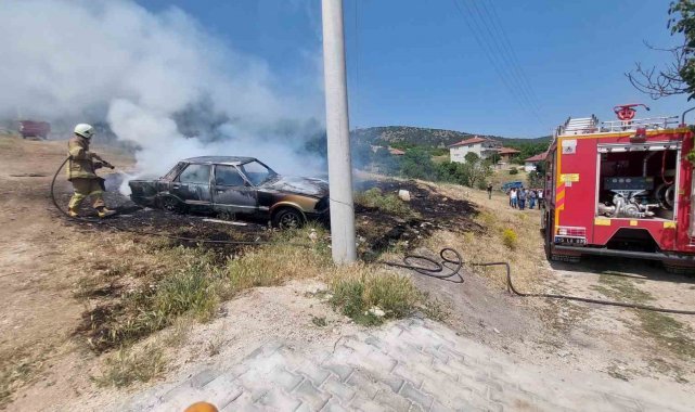 Burdur'un Yeşilova ilçesinde park halindeki otomobil, yangında kullanılamaz hale geldi.