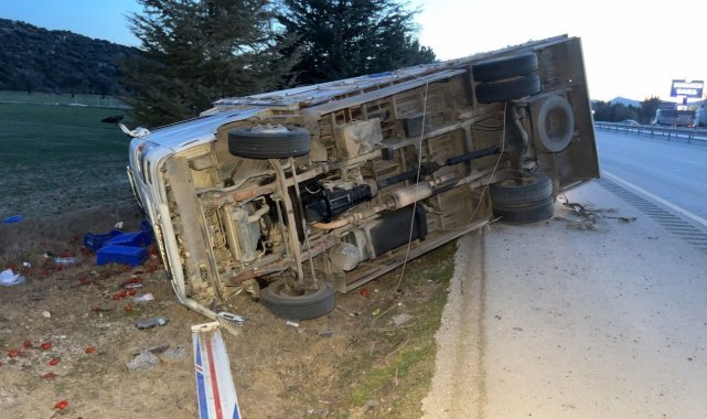 Burdur'da sebze yüklü kamyonet devrildi: 2 yaralı