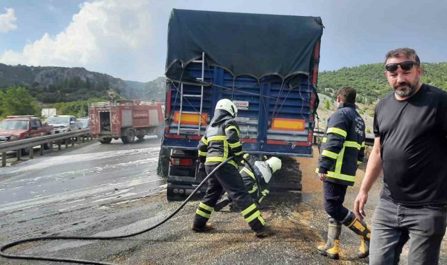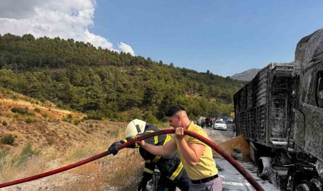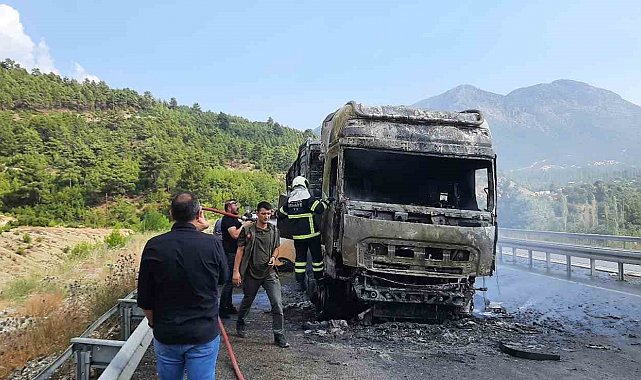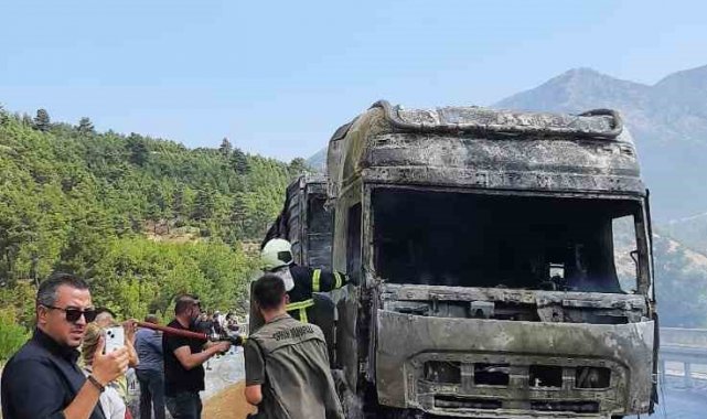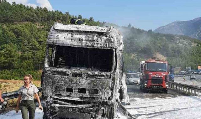 Olay, saat 16.00 sıralarında Burdur'un Çeltikçi ilçesi Tekkeköy mevkisi D-650 kara yolu üzerinde meydana geldi. Edinilen bilgilere göre, Remzi Y. (49) idaresindeki 06 CNU 487 plakalı tırın motor bölümünden bir anda dumanlar yükselmeye başladı. Alevleri fark eden sürücü, aracı emniyet şeridine çekerek itfaiyeyi aradı. İhbar üzerine olay yerine gelen itfaiye ekipleri, tırdaki yangına müdahale ederek alevleri kontrol altına aldı. Tamamen yanan tır kullanılamaz hale gelirken otluk alan sıçrayan alevler de itfaiye ekiplerince kısa sürede söndürüldü. Olayla ilgili inceleme başlatıldı.